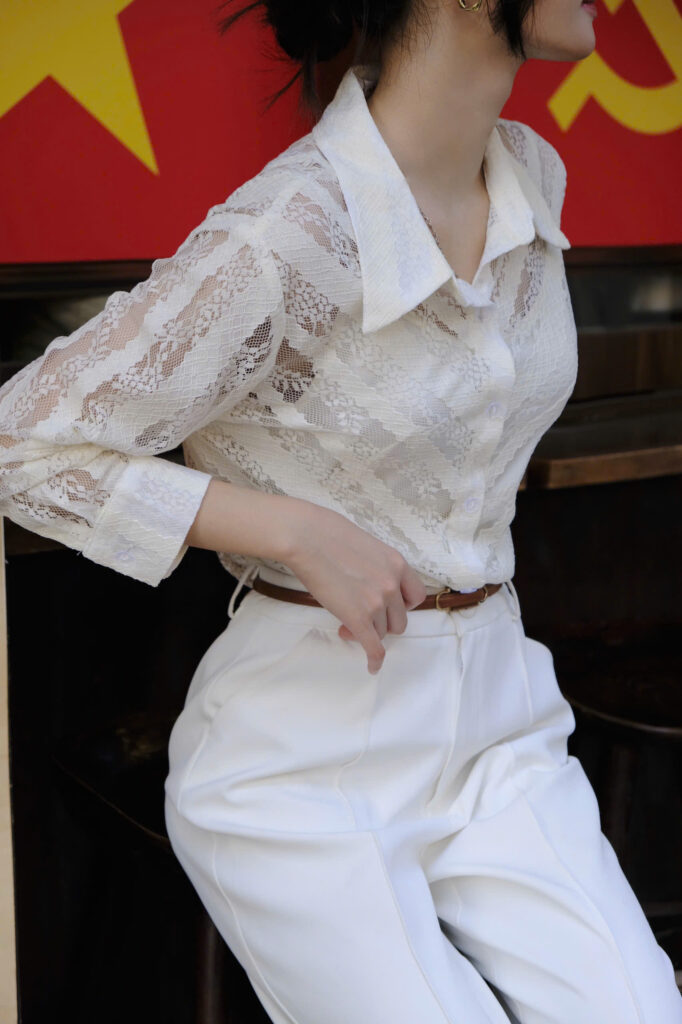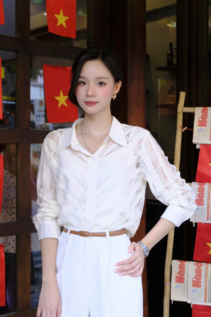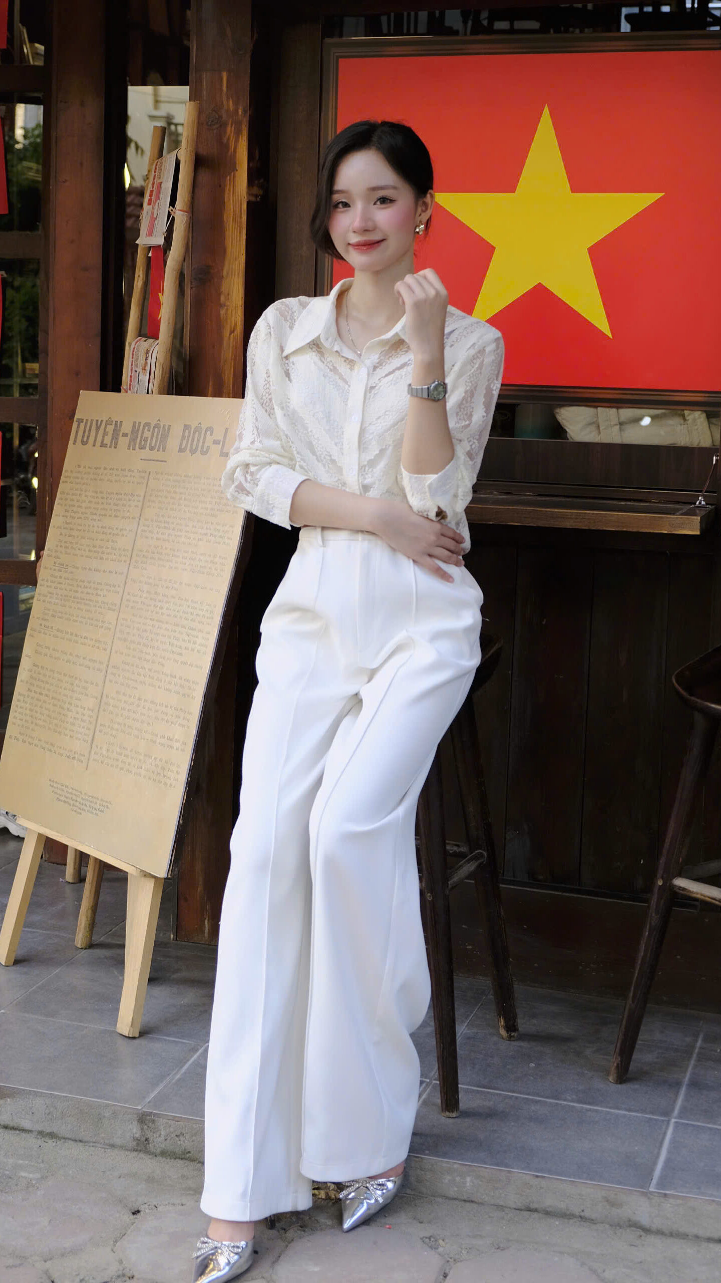 Gồm hai áo tách rời, ren hoa mềm mại, lụa mịn mát, form suông dễ phối, phù hợp nhiều dịp.